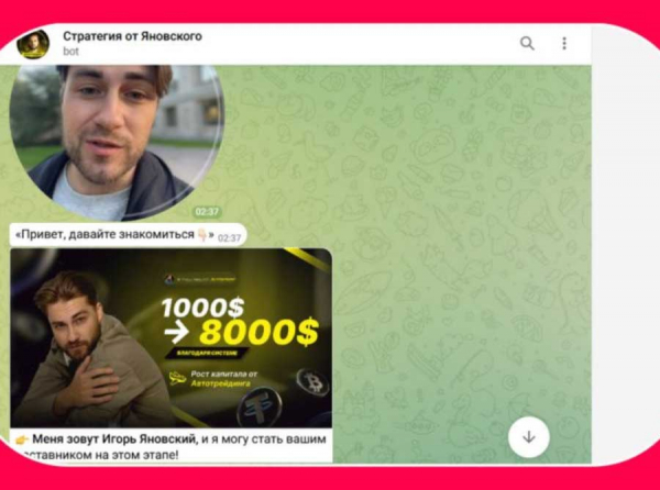 Короче, пообщался я в чате с «трейдером Игорем Яновским». Суть такая: вас пытаются закрыть на звонок. В чате пишет общие фразы, что он копи трейдер про с bybit, далее, присылает скрин с PnL. где всё красиво. Потом я прошу: дай мне ссыль на твой профиль в bybit. Он отвечает, что поскольку он вип, а я не вип, я не могу видеть его профиль. Для доказательства присылает смешной поддельный скрин якобы с правилами bybit, ссылка, естественно, не существует такая. В общем, или звонок, или иди на фиг. По опыту прошлогоднего общения с похожими ребятами скажу, что там, судя по всему, провернут схему с каким-то левым кошельком.