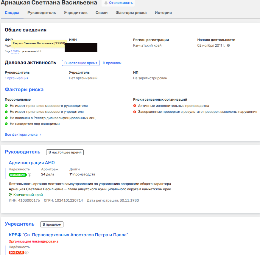 Более того, через Лесина высокое семейство связано со скандально известной Светланой Арнацкой (в девичестве - Гавриш), которая является главой администрации Алеутского муниципального округа.