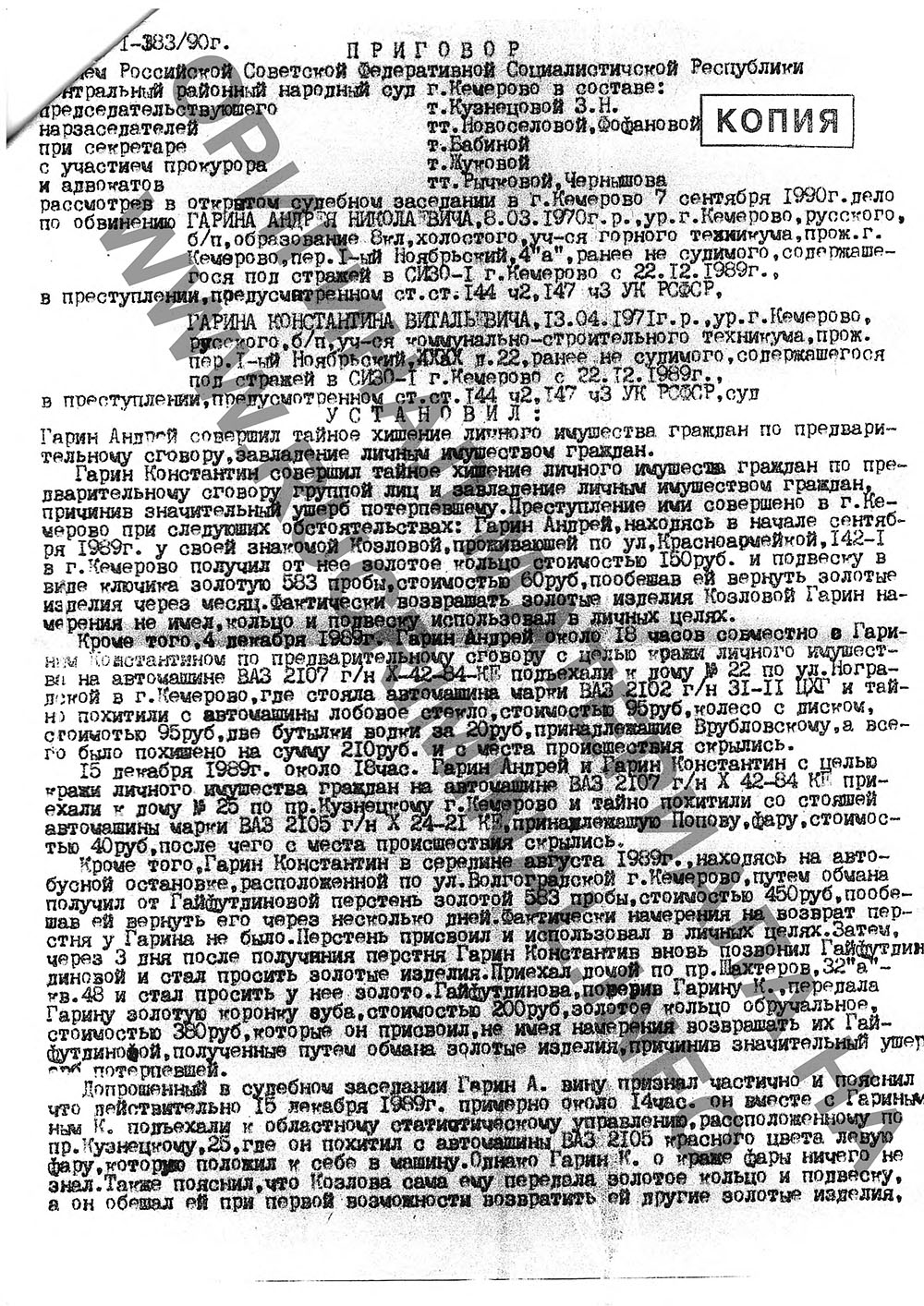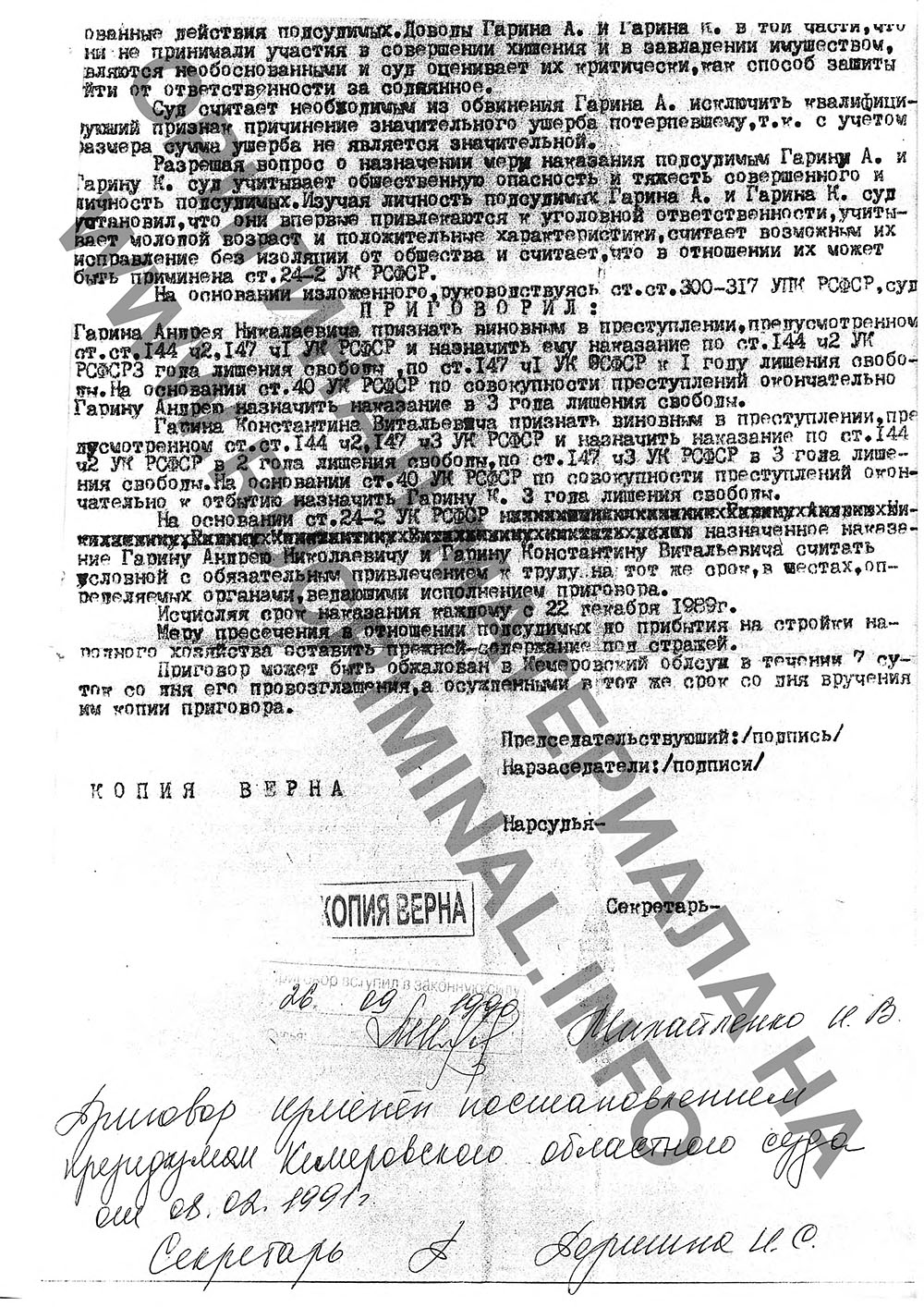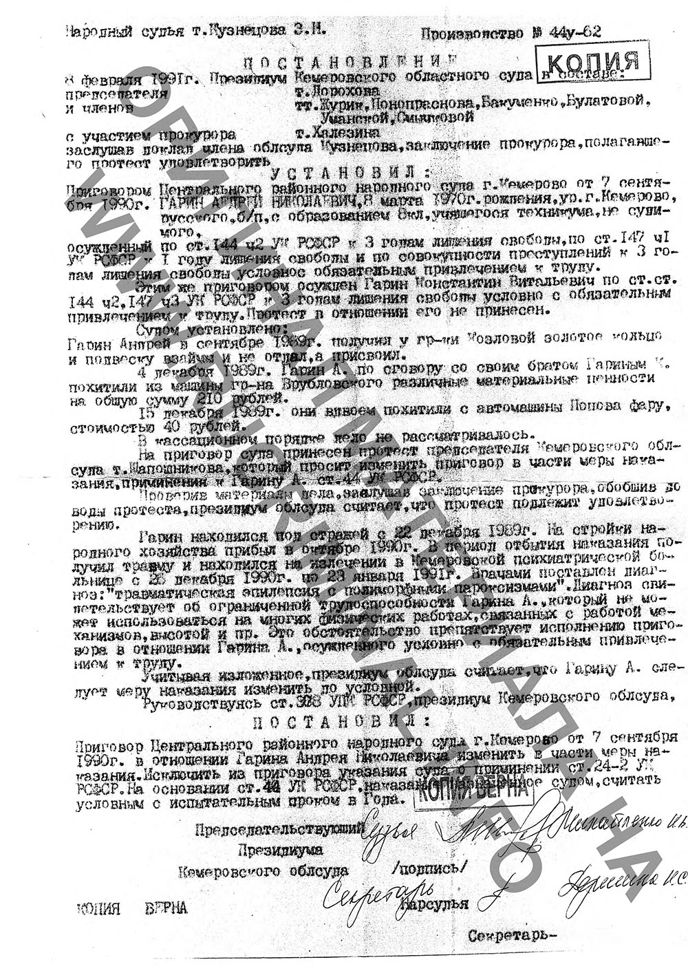Гарин просто поражает воображение масштабностью своего влияния, этакий современный заклинатель змей! В Краевом суде закрепляются неправомерные решения в пользу его семьи; структуры МВД заводят административные и уголовные дела против тех, кто ведёт самостоятельные “раскопки” этого дела…