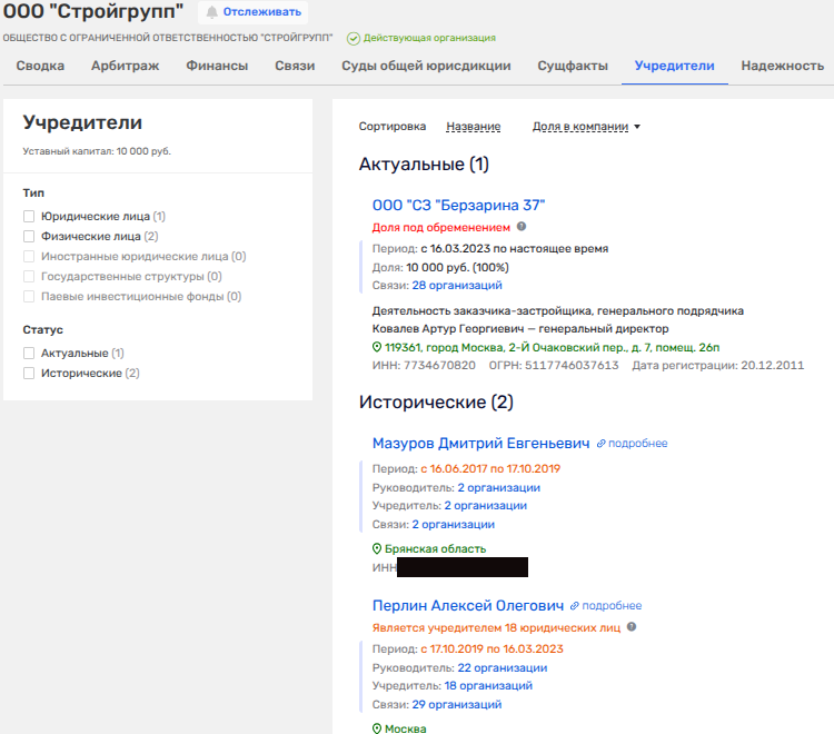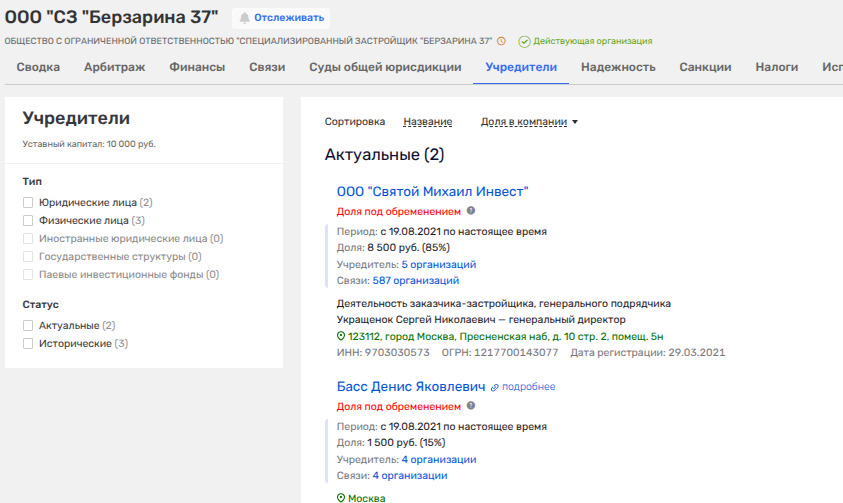 А вот тут-то начинается самое интересное. Было у Перлина-младшего ООО «Стройгрупп», которое он слил компании СЗ «Берзарина 37». Владельцем последнего стал Денис Басс и его фирма.