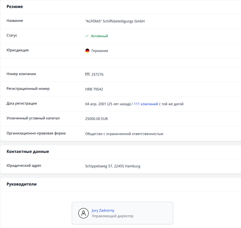 Когда заварушка с ФАС только началась, Задворный начал прятать свои уши в активах, хотя по-прежнему с немецкими фирмами был связан он сам и его родня - Karina Zadvornaia, что была до сентября 2025 года управляющим директором немецких фирм.
