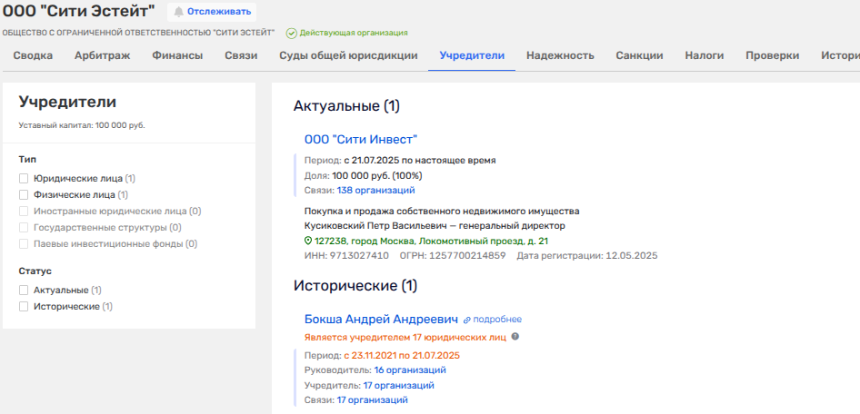 На днях инсайдеры сообщили, что партнером Ручьева по освоению 14 га бывшего деревообрабатывающего комбината на юго-востоке Москвы стало некое «Сити Эстейт». И вот что интересно: до 21 июля 2025 года последним владел Андрей Бокша, позднее сливший актив по цепочке под крыло ЗПИФ.