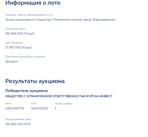 Но вернемся к покупке АО «Племенной конный завод «Карачаевский».