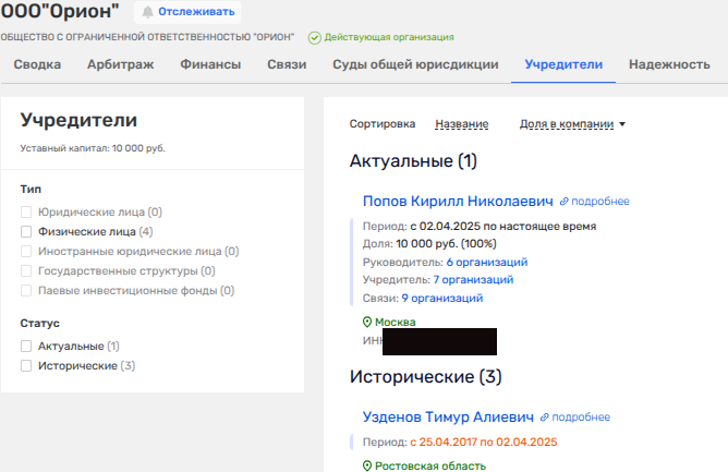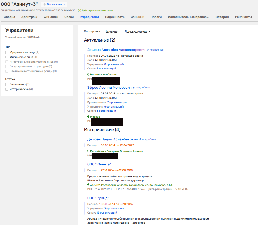 В том же ООО «Азимут-3» ранее в числе владельцев было и ООО «Румид», чьим бенефициаров через компанию «Орион» был один из сыновей Али Узденова Тимур, в апреле 2025 года сливший актив доверенному лицу.