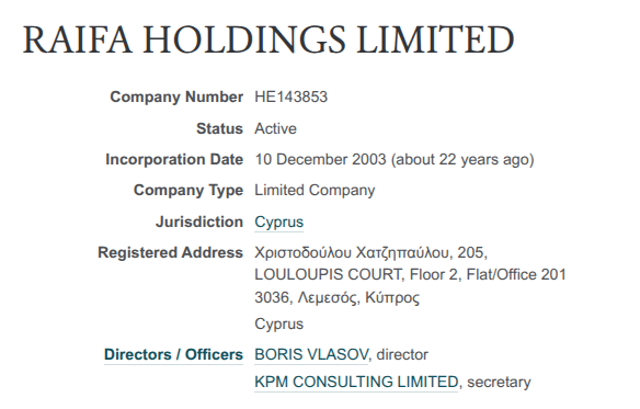 В истории скупки активов «Ростзернотранса» вскрывается связка Эфроса и с офшором - кипрской фирмой РАЙФА ХОЛДИНГЗ ЛИМИТЕД.