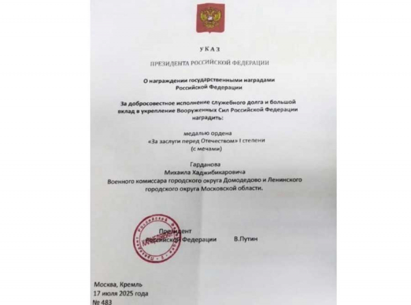 Военного комиссара Михаила Гарданова отметил президент Владимир Путин..