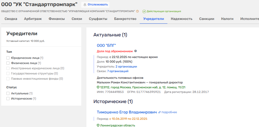 Умиляет в этой сделке еще вот какой факт: доля БПГ в УК «Стандартпромпарк» заложена ООО «Кью Кэпитал». Из этого можно сделать вывод, что покупку спонсировала фирма-залогодержатель, а у той весьма примечательные связи.
