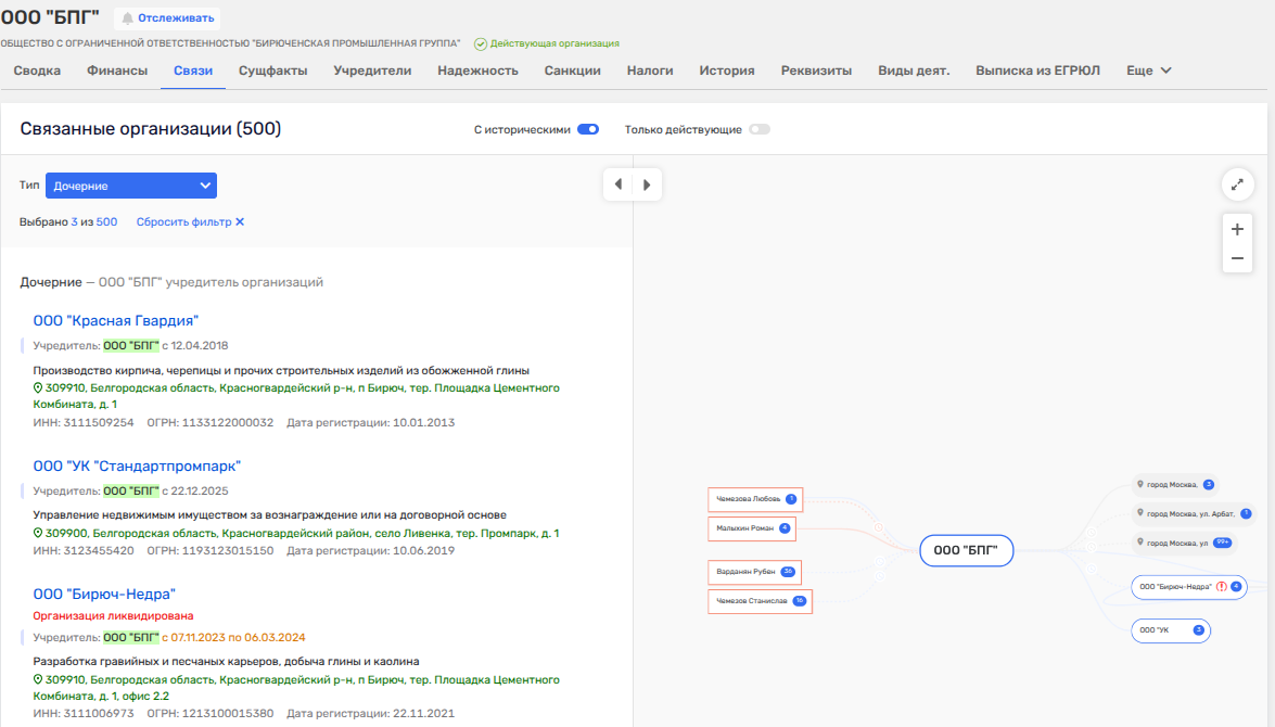 При этом у самой БПГ финансовые итоги из серии «обнять и плакать»: за 2024 год чистый убыток составил почти треть миллиарда, а стоимость самой фирмы имела отрицательное значение - 131 млн рублей. Более того, БПГ в 2024 году вынужденно было ликвидировать дочернее ООО «Бирюч Недра», которое занималось разработкой карьеров, читай - поставляла продукцию для кирпича белгородскому заводу, но уже в 2023 году фирма стала убыточна - ушла в минус на 12 млн рублей.