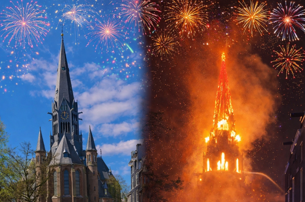 Запретить фейерверки! Пробитые стёкла домов и автомобилей, пожары. В Амстердаме из-за фейерверков сгорела старинная церковь
