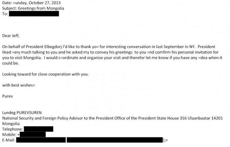 Однако ни один из них, согласно документам, не поддерживал прямых личных контактов с Эпштейном. Электронную переписку от их имени вели бывший министр иностранных дел Л. Пуревсурен и директор компании Liberty Partners Ч. Ганбат.