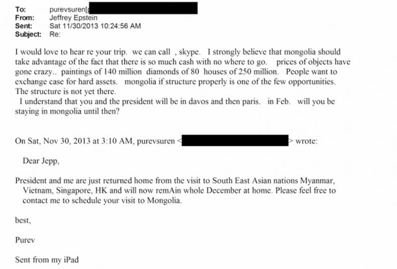 Поясним сразу: доказательств причастности монгольских политиков к сексуальным преступлениям Эпштейна нет. Контакты, зафиксированные в переписке, касаются в основном экономических и политических вопросов. На тот момент Эпштейн воспринимался как влиятельный финансист и экономический консультант.