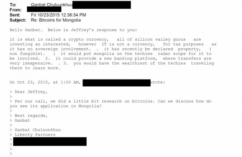 В том же году Ч. Ганбат начал обсуждать с Эпштейном идеи, связанные с биткоином и криптовалютами.